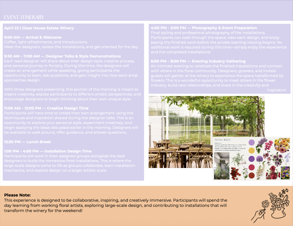Ready to reserve your spot for April 23rd? Please email Floral Support at info@floralsupport.ca